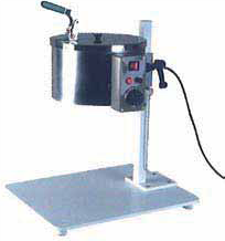 With a capacity of 30 (66 lbs) or 60 kg (132 lbs) the alloy dispenser is totally made from stainless steel. It is mounted on a painted steel stand which allows it to move up and down. It is fitted with a thermostat that allows temperature control inside the pot. A lever located on top of the alloy through opening or closing a dispensing hole. It runs on AC current 230 Volt. It is supplied with a lid and a skimmer.